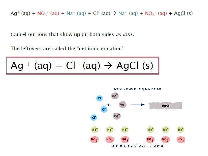 Ag. NO 3 (aq) + Na. Cl (aq) → Na. NO 3 (aq) + Ag. Cl (s) This is the chemical equation – it is what we’ve been doing for weeks.