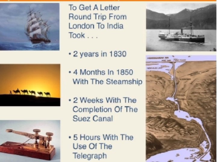 • Transportation and communication developments – Steamships and railroads – Telegraph to telephone – Canals (Suez) • Connects Africa to Asia • Easier for Europe to get to Asia and East Africa – Panama (1910 ish) • Advances in medicine like smallpox vaccines and sterilization made for longer life expectancy in industrialized world – Lower infant mortality rate