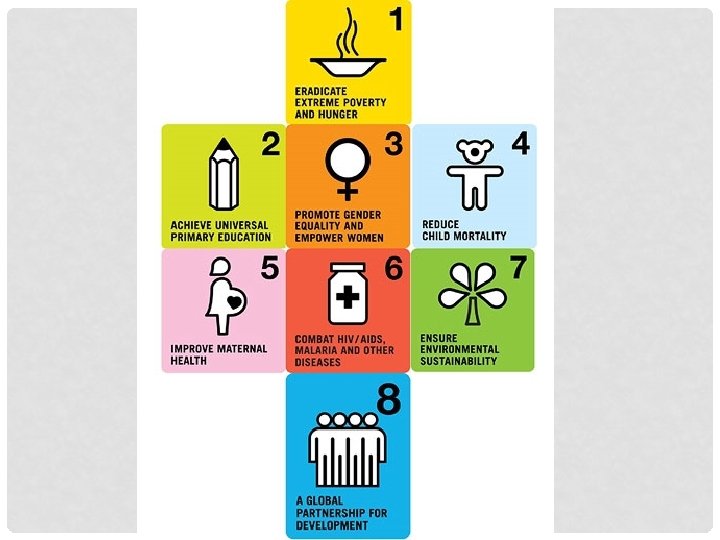 Purpose of MDGs • The Goals were agreed to in 2001 • The Goals were devised by the UN in 2000 and adopted by nations in 2001 • The idea of course is to create a better world • Many nations are already falling short • But there are success stories