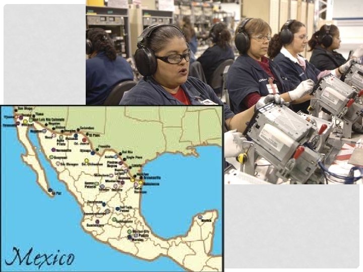 26. MAQUILADORAS • Foreign-owned assembly companies located in the United States/Mexico border region. • These companies are able to take advantage of cheaper labor, tax breaks, lax environmental regulations while operating close the markets for the products. • See next slide for photo