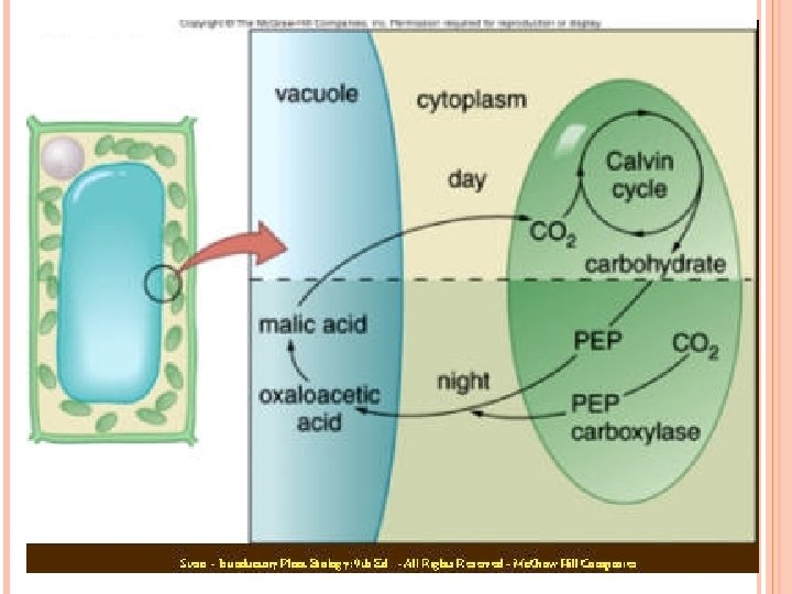 CAM – Crassulacean Acid Metabolism Adaptation for intense arid conditions Many succulent plants, cacti, pineapples, Jade Water Plants open stomata at night Take conservation adaptation up CO 2 & incorporate into organic acids Close stomata during the day Prevent massive water loss But, no CO 2 can enter
