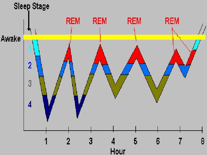 Beyond the first 90 minutes �Sleepers cycle between NREM and REM sleep throughout the night �Each cycle lasts about 90 minutes