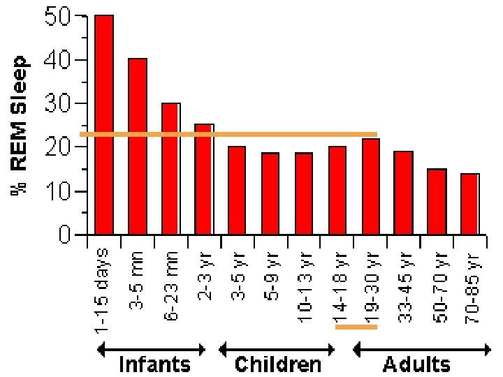 REM (Rapid Eye Movement) �Recurring sleep stage �Vivid dreams �The first REM stage lasts about 15 minutes – the first sleep cycle lasts about 90 minutes total