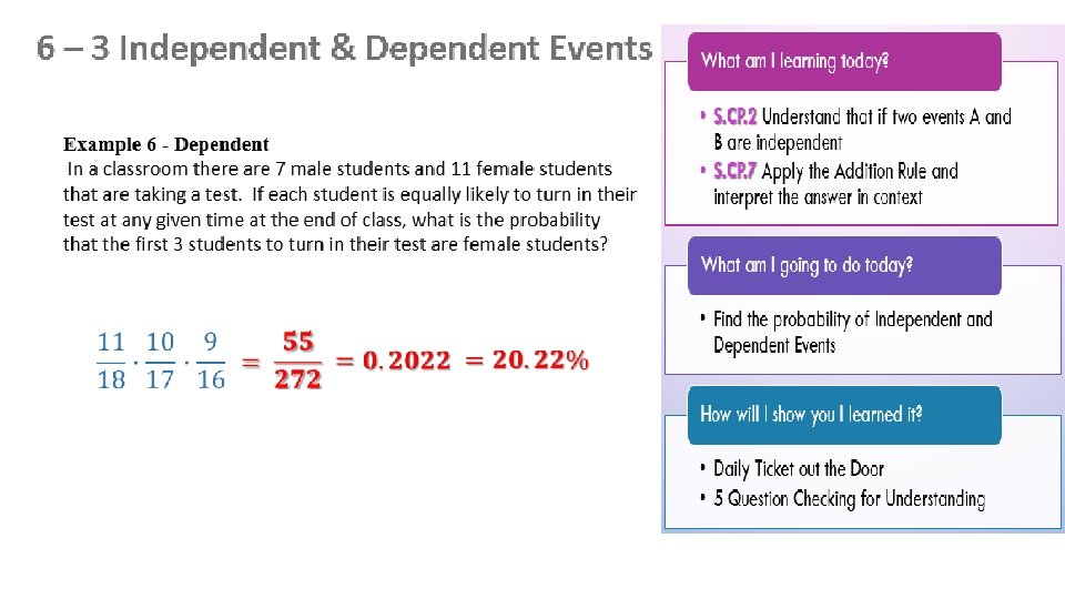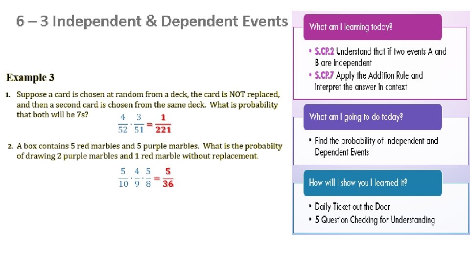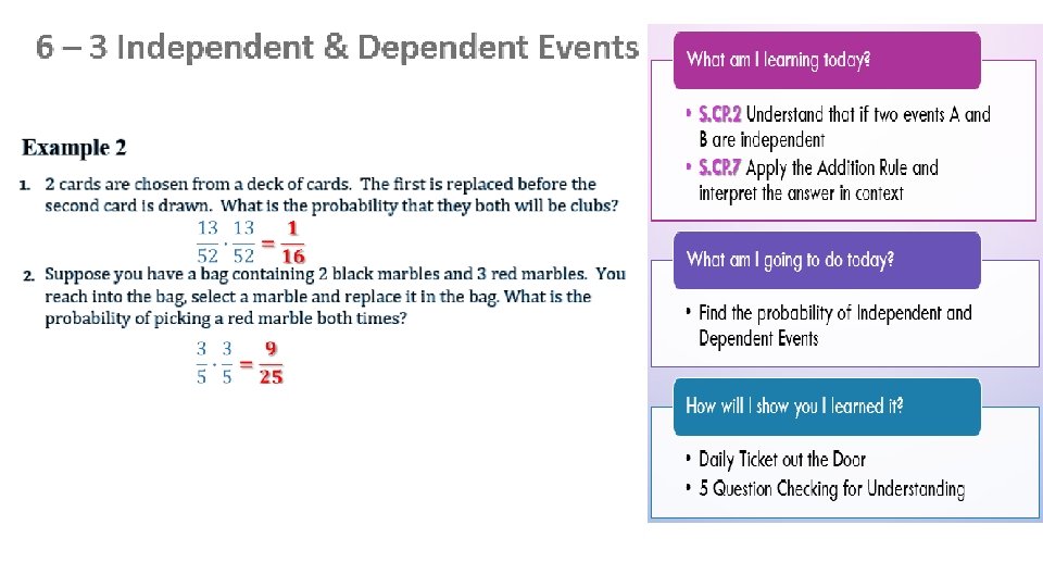 Unit 6: Application of Probability 6. 3 Independent and Dependent events