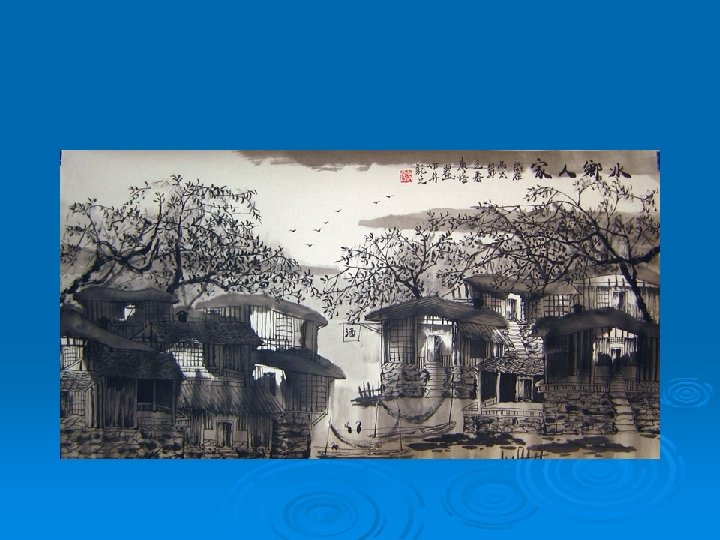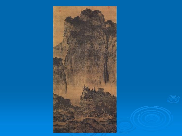 Ø Tang Dynasty known as the Great Age of Poetry l Expressed a Daoist appreciation of the worldbeauty of nature, changes of seasons, and joys of friendship Ø Song Dynasty known for Landscape Paintings Did not try to portray places exactly- tried to capture the idea of mountains, lakes, and other scenes Ø Left spaces on purpose- to express the Daoists belief that a person cannot know the whole truth about something; people are also shown as small figures (part of nature, but don’t control it) Ø