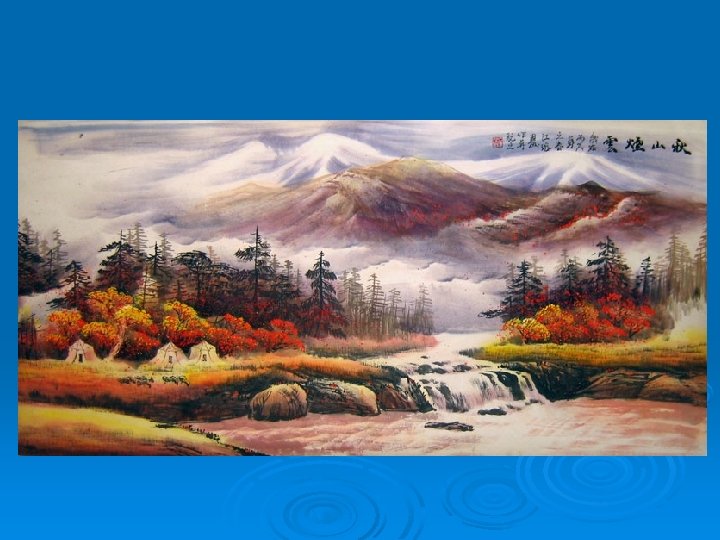 Assignment Ø Your job is to create a Chinese landscape painting. Ø You will be graded on: l l How accurate your subject matter is The title of your painting Creativity How well you incorporate the concept of “balance and harmony” into your painting