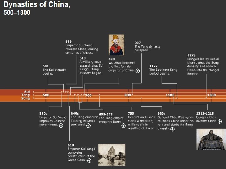 Sui Dynasty - Sui Yangdi rebuilds Great Wall - Builds Grand Canal - Hard-handed autocrat inspires revolt, and successful rebels create Tang dynasty