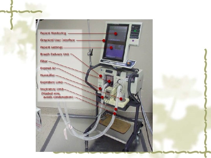 Para. 19 Question: 11. In what ways are bedside monitors helpful according to this paragraph ? Para. 20 v FIO 2 is short for: Fractional Inspired O 2 Concentration Question: 12. In what conditions are ventilators usually used in the ICU ?