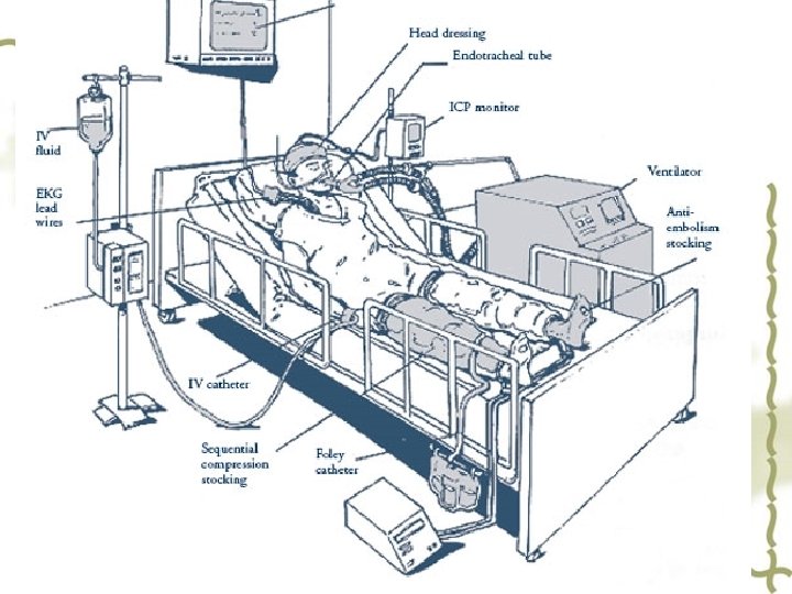 v Patients who are admitted to the ICU for observation after surgery may have special requirements for monitoring. These patients may have catheters placed to detect hemodynamic (blood pressure) changes, or require endotracheal intubation to help their breathing, with the breathing tube connected to a mechanical ventilator.