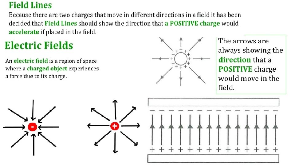 Force fields Ø Gravity applies an invisible force that pulls masses together. Ø This force occurs without any contact. Ø Force is said to come from an invisible force field. Ø Charges also exert an invisible force on each other. Either attractive or Notice- field lines come out from repulsive forces through a force field. the positive and into the negative.