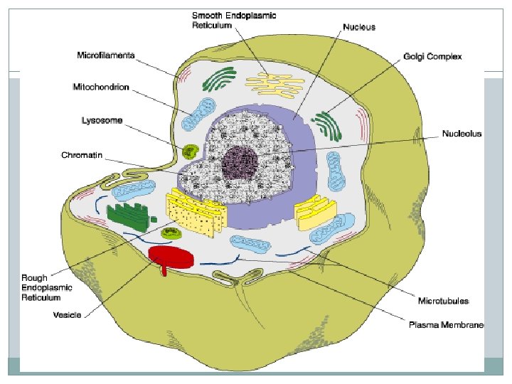 Human body vs. cell �Human survival needs & the organ systems that meet those needs: intake and use of nutrients – digestive movement & growth – musculoskeletal response to stimuli – nervous exchange of gases – respiratory, circulatory waste removal – excretory reproduction – reproductive �The cell has tiny organs, called organelles to perform the same set of functions on a smaller scale