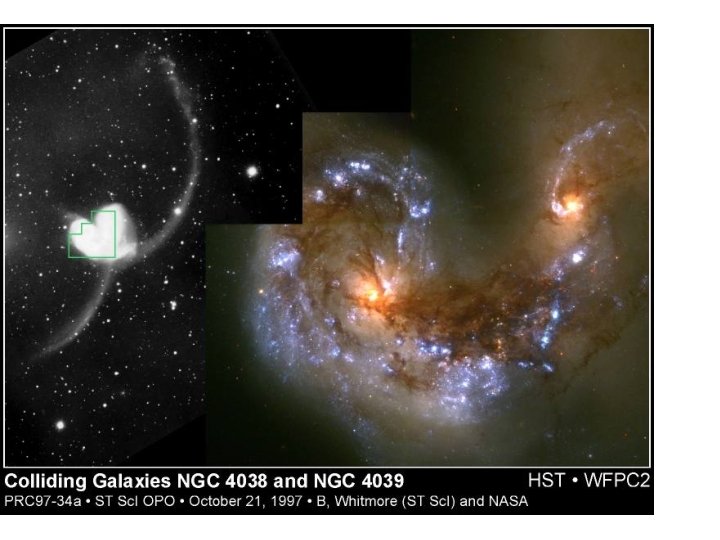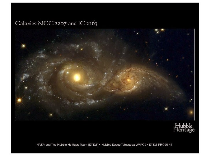Galassie irregolari • Poca o nessuna simmetria • Due sottoclassi: tipo I (Irr I) e tipo II (Irr II) - Irr I: fortemente risolte in stelle (a. e. LMC) - Irr II: caotiche e disturbate (a. e. M 82)