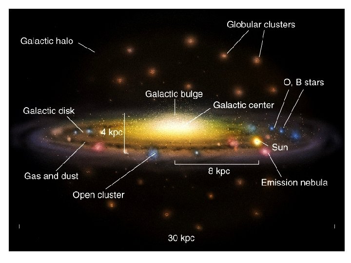 Via Lattea – Scheda Luminosità ~ 2 x 1010 L Massa ~ 2 6 x 1011 M disco ~ 105 anni-luce h disco ~ 103 anni-luce No. di stelle ~ 4 x 1011 Densità media di stelle ~ 1 per 125 anni-luce 3 Separazione media fra stelle ~ 5 anni-luce La stella più vicina al Sole, Proxima Centauri, si trova a ~ 4. 3 anni-luce