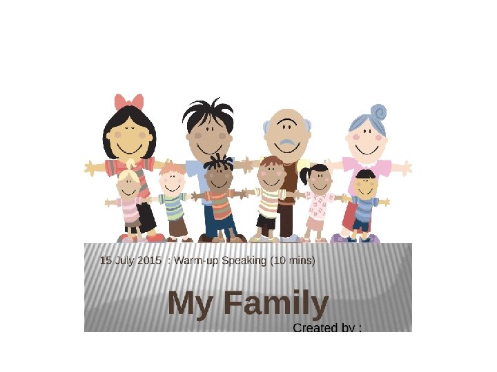 • • • Families are goal directed: exist for purpose, for example to establish and promote the development of their members, to provide love security, assistance etc… to their family members. Every family has its own cultural values and rules. Shared values and effects Certain roles are presented and defined for family members Every family has structures Traditional family: Nuclear family (husband, wife, and children Live in common house) Nuclear –dyad (husband, wife, with no children or grow children out side home single parent (one adult male/female living alone multigenerational (several age group live together. E. g. , widowed women live with divorceddaughter with grand children’s)