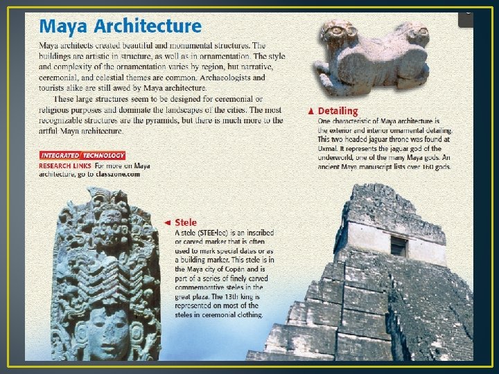 Huge cities – many cities. Some with over 40, 000 people • Great architects/skilled engineers • All their cities linked trade and alliances with each other.