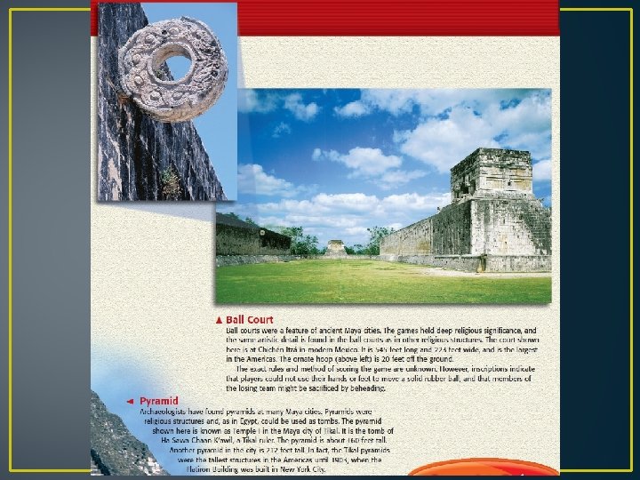 Maya – 200 BCE– 900 C. E civilization on the Yucatan peninsula (Mexico). Lived in the rainforest and built cities in the jungle *Gods fed on and survived on human blood– human sacrifice. Price of Blood Video *Built pyramids