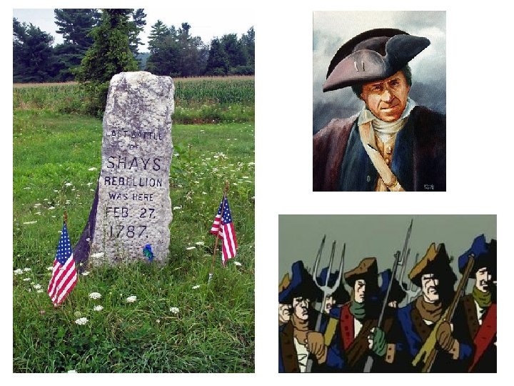 Articles of Confederation • Weaknesses: – – – – – National gov. cannot effectively tax No national law enforcement No Executive Branch No Judicial Branch Congress cannot international or interstate trade Each State gets 1 vote in Congress No mandatory power to raise army/navy National laws needed a 9 of 13 vote Amendments required unanimous consent of the States Only a “firm league of friendship”; not a union