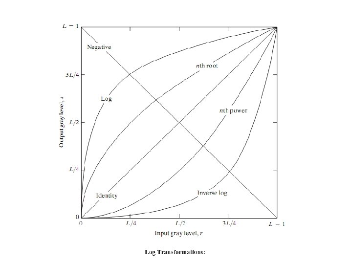 contd… • The locations of (r 1, s 1) and (r 2, s 2) control the shape of the transformation function. – If r 1= s 1 and r 2= s 2 the transformation is a linear function and produces no changes. – If r 1=r 2, s 1=0 and s 2=L-1, the transformation becomes a thresholding function that creates a binary image. – Intermediate values of (r 1, s 1) and (r 2, s 2) produce various degrees of spread in the gray levels of the output image, thus affecting its contrast. – Generally, r 1≤r 2 and s 1≤s 2 is assumed.