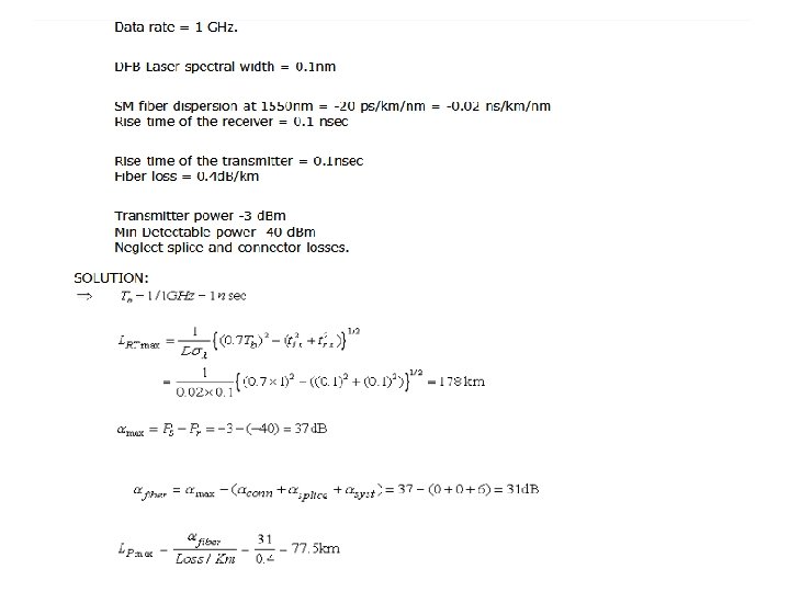 • The final power budget equation is • Pd = P s – P r = Ps – (η. Ps – losses) = Ps – η. Ps + losses = Ps (1 - η) + m. Lc + n. Ls + . D + s So the power budget equation is Pd = Ps (1 - η) + m. Lc + n. Ls + . D + s