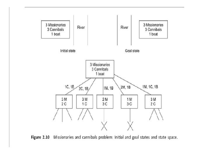 Missionaries and Cannibals problems • The missionaries and cannibals problem is the one where three missionaries and three cannibals are on one side of a river • There is a boat that can hold one or two people • We need to find a way to get everyone to the other side of the river without ever leaving a group of missionaries in one place outnumbered by cannibals in that place • A maximum of two objects can travel to other side and minimum of one has to be there in the boat to come back