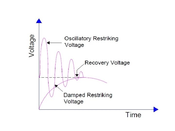 • Since the contacts of breaker are shunted by resistance R, therefore a part of arc current will flow through this resistance R. Due to this the magnitude of arc current will reduce which in turn will result in increase in the rate of de-ionization of arc path. In this way, the arc resistance increases. This increased arc resistance leads to further increases in the current through the shunt resistance R. • Thus again, the arc current will reduce and hence the arc resistance increases. This cumulative process will continue till the magnitude of arc current becomes so low that it is not able to maintain the arc. Thus the arc extinguishes and the current is interrupted by the breaker. • Resistance Switching also reduces the oscillatory growth of Re-striking Voltage. The natural frequency of the circuit shown above is given by fn = (1/2π)√(1/LC – 1/4 R 2 C 2) • The main role of shunt resistance R is to limit the growth of re-strike voltage and cause it to grow exponentially up to recovery voltage. If the value of R is so selected that the circuit becomes critically damped then re-strike voltage rises exponentially till recovery voltage is reached.