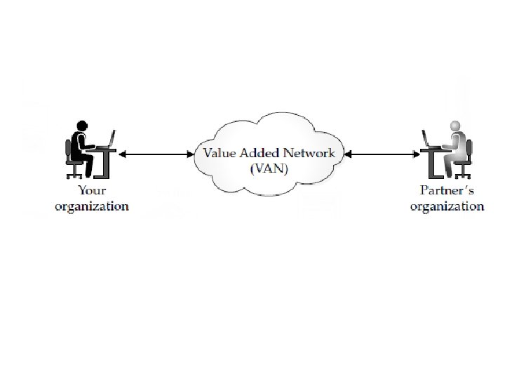 • EDI uses technologies such as Extensible Markup Language (XML) and the World Wide Web to function. The EDI format is used more for e-commerce transactions. • Value Added Networks: • A VAN is sort of an electronic post office. It receives transactions, looks at the “To” and “From” information, and routes the messages to their intended recipients. VANs are still widely used, because they provide some additional services, such as retransmitting documents, providing third-party audit services, and providing support.