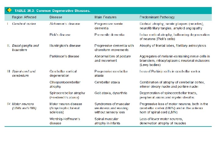 • Classification is based on clinical aspects and anatomic distribution of the lesions. • Common degenerative diseases: – Alzheimer’s disease – Parkinsonism