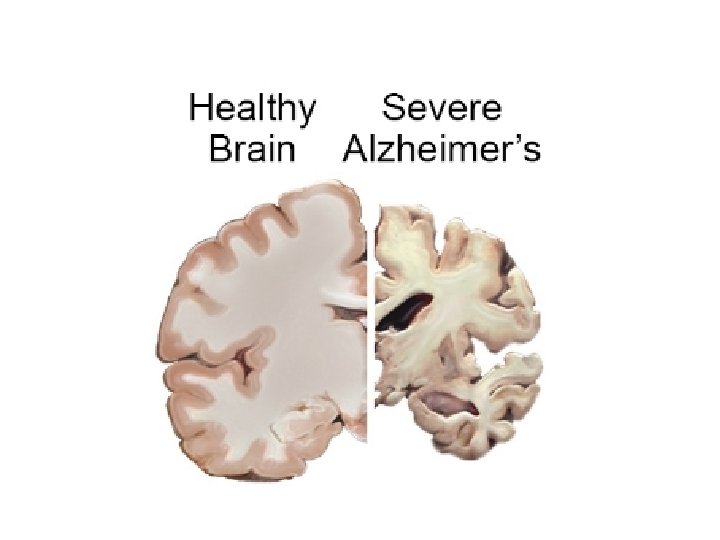 • cause of 60– 70% of cases of dementia • early symptom: difficulty in remembering recent events • Loss of language, disorientation (including easily getting lost), mood swings, loss of motivation, not managing self care, and behavioural issues • Patients condition declines, often leads to withdraw from family and society • Gradually, bodily functions are lost, ultimately leading to death • Few factors are implicated in its etiology: – include positive family history and – deposition of Aβ amyloid derived from amyloid precursor protein (APP) forming neuritic ‘senile’ plaques and neurofibrillary tangles. • brain is often reduced in weight and bilaterally atrophic.