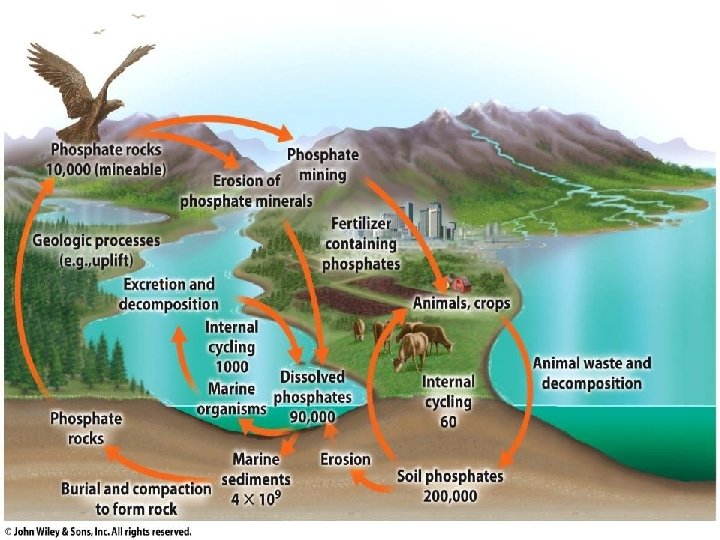 Nutrient Cycles – Phosphorous Cycle • Based on phosphate ions (PO 43 -) usually found in rock formations and ocean sediments. – Released by weathering and volcanic activity.