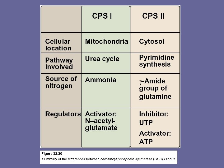 A. Synthesis of carbamoyl phosphate • The regulated step of this pathway in mammalian cells is the synthesis of carbamoyl phosphate from glutamine and CO 2, catalyzed by carbamoyl phosphate synthetase (CPS) II. • CPS II is inhibited by UTP (the end product of this pathway, which can be converted into the other pyrimidine nucleotides), and is activated by ATP and PRPP. ]Note: Carbamoyl phosphate, synthesized by CPS I, is also a precursor of urea. Unlike other carboxylating enzymes, neither CPS requires biotin as a coenzyme.