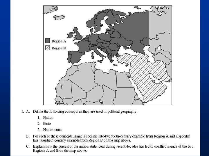 Part nation State • when a nation overlaps the boundaries of multiple States/you have multiple nations states the same nation (Arabia) • Arabs in North Africa