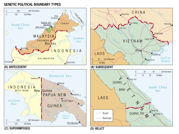 3. Relict/relic Boundary: historical boundary, no longer valid. Great wall of China, Berlin Wall