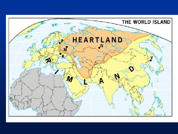Geopolitics Ratzel’s Organic Theory: countries are living organisms Mackinder Heartland Theory: land-based power (pivot area Europe) Spykman Rimland Theory: naval power