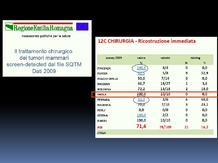 TRATTAMENTO DEL SENO CONTROLATERALE (43. 6%) ØMastoplastica riduttiva 88 ØMastopessi 54 ØMastoplastica additiva 20 Chirurgia Imola