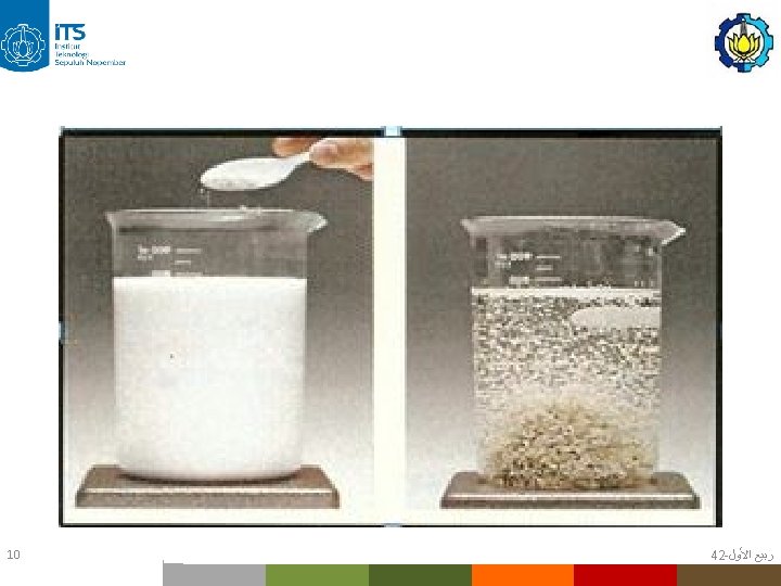 Kestabilan Partikel Tersuspensi • Partikel tersuspensi sangat sulit mengendap langsung secara alami • Stabilitas koloid terjadi karena: – Gaya van der Waals – Gaya Elektrostatik – Gerak Brown ftsp 2 42 - ﺍﻷﻮﻝ ﺭﺑﻴﻊ