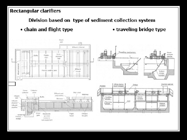 KRITERIA DESAIN BP I CIRCULAR Kriteria Disain Rectangular Range (m) Tipikal 3. 05 – 4. 6 m 3. 66 m Diameter 3, 05 – 60, 96 m 12, 2– 45, 72 m Slope Dasar 0, 75 - 2, 0 in/ft 1 in/ft Flight Travel speed 0. 02 – 0. 05 m/mnt 0. 03 m/mnt Kedalaman (Sumber : Metcalf dan Eddy, 1991)