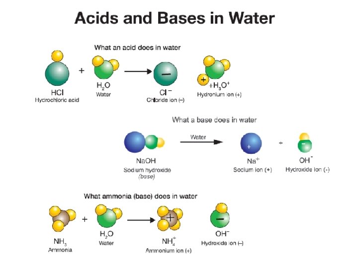 21. 3 Acids and bases § One of the most important properties of water is its ability to act as both a weak acid or as a weak base. § In the presence of an acid, water acts as a base. § In the presence of a base, water acts as an acid.