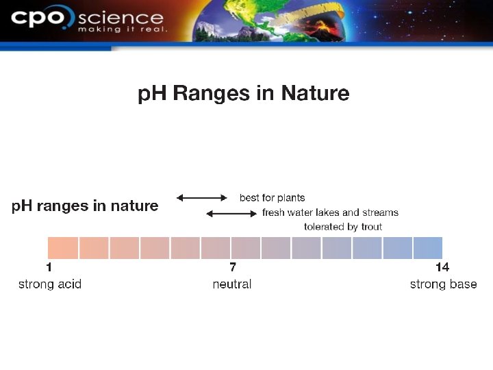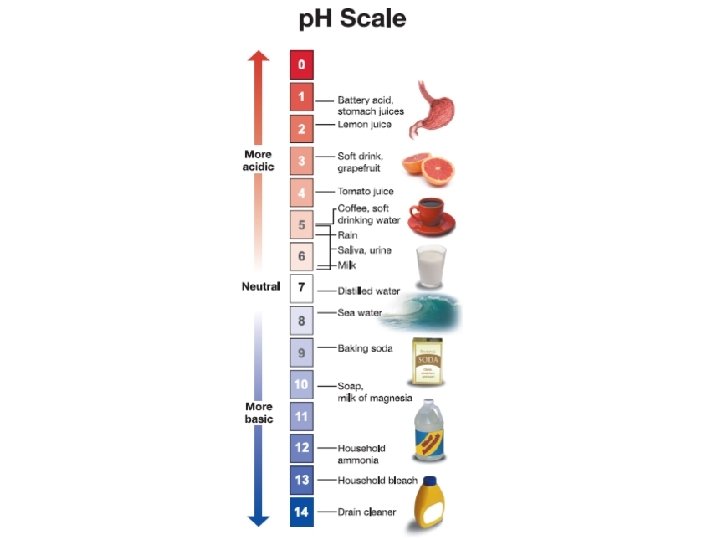 21. 3 The p. H scale § The p. H scale ranges from 0 to 14. § Acids have a p. H less than 7. § A base has a p. H greater than 7. § Pure water has a p. H equal to 7.