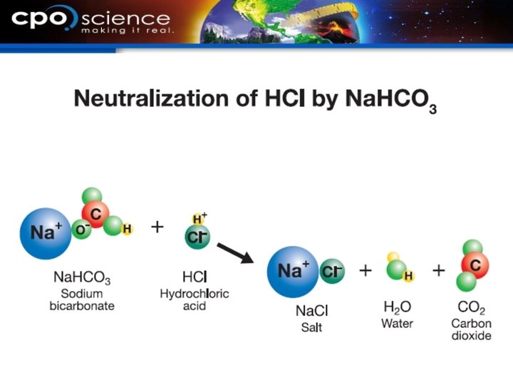 21. 3 Neutralization reactions § When acid and base solutions are mixed in the right proportions, the positive ions from the base combine with the negative ions from the acid. § A new ionic compound forms and water is one of the products. § This is a neutralization reaction.