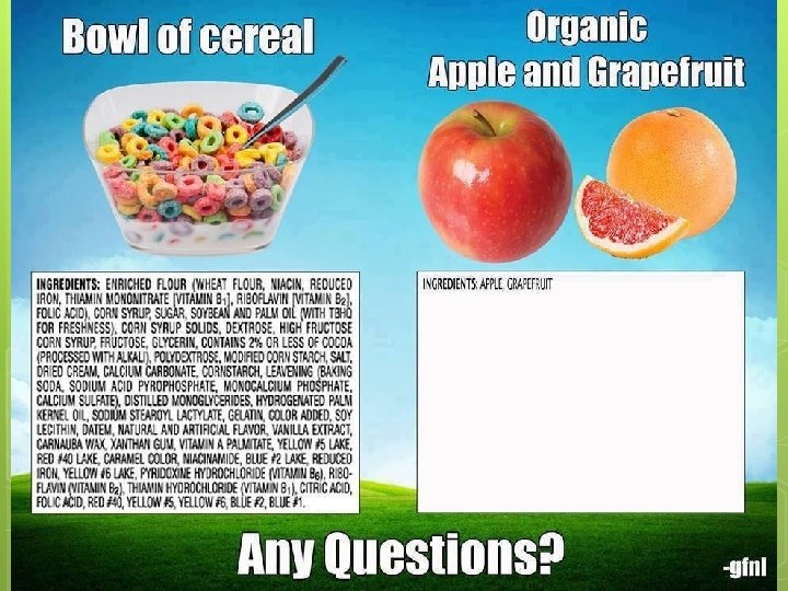 Comparison Use the Application “Nutrient Facts” and look up basic things you commonly eat. Be prepared to share something you were surprised to find. Using your BYOT or laptop, search two different products that you usually eat or that you have once had. Pick one that you think is healthy, and pick one that you think is not healthy (same product, two versions)…. THEN really find out the truth!