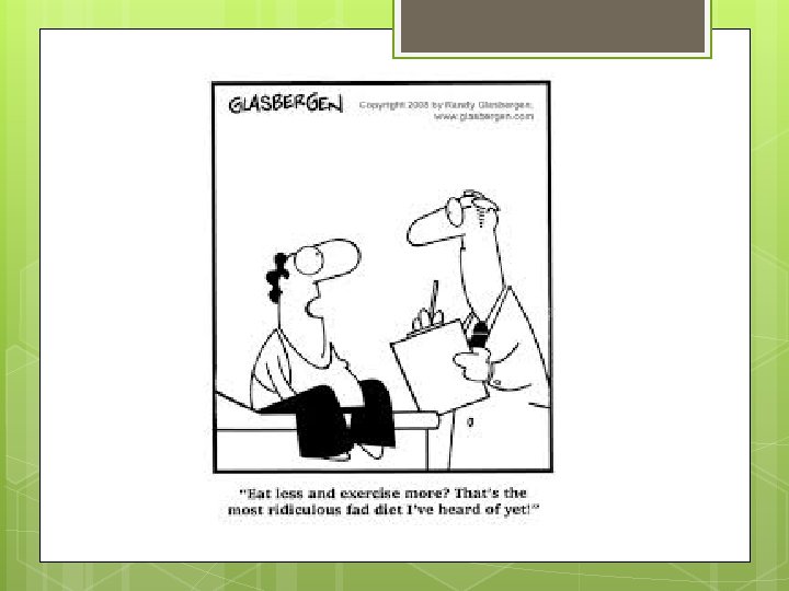 So… What is a Fad Diet? A fad diet is a weight loss diet Makes unrealistic promises or claims Fad diets are linked to eating disorders This is usually a short-term fix