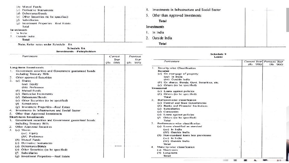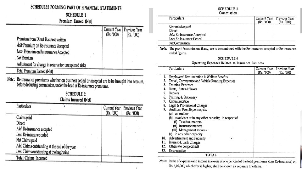 Cont. . • Claims on Reinsurance accepted: It is the amount paid or to be paid to the other insurers for the reinsurance accepted. • Commission on Reinsurance ceded: It is the commission that is recieved by the original insurer for transfering the business to the reinsurer. • Commission on Reinsurance accepted: It is the commission that is paid to the original insurer on accepting such bussiness thats transfered to them.