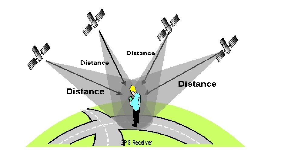 How GPS Determines a Position ØThe GPS receiver uses the following information to determine a position. v. Precise location of satellites • When a GPS receiver is first turned on, it downloads orbit information from all the satellites called an almanac. • This process, the first time, can take as long as 12 minutes; but once this information is downloaded, it is stored in the receiver’s memory for future use. v. Distance from each satellite • The GPS receiver calculates the distance from each satellite to the receiver by using the distance formula: distance = velocity x time. • The receiver already knows the velocity, which is the speed of a radio wave or 186, 000 miles per second (the speed of light). v. Triangulation to determine position • The receiver determines position by using triangulation. • When it receives signals from at least three satellites the receiver should be able to calculate its approximate position (a 2 D position). • The receiver needs at least four or more satellites to calculate a more accurate 3 D position.