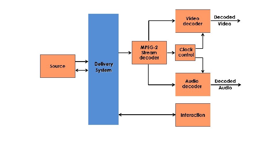 Digital audio broadcast (DAB) üDAB Project is an industry-led consortium of over 300 companies üThe DAB Project was launched on 10 th September, 1993 üIn 1995 it was basically finished and became operational üThere are several sub-standards of the DAB standard o DAB-S (Satellite) – using QPSK – 40 Mb/s o DAB-T (Terrestrial) – using QAM – 50 Mb/s o DAB-C (Cable) – using OFDM – 24 Mb/s üThese three sub-standards basically differ only in the specifications to the physical representation, modulation, transmission and reception of the signal. üThe DAB stream consists of a series of fixed length packets which make up a Transport Stream (TS). The packets support ‘streams’ or ‘data sections’. üStreams carry higher layer packets derived from an MPEG stream & Data sections are blocks of data carrying signaling and control data. üDAB is actually a support mechanism for MPEG. & One MPEG stream needing higher instantaneous data can ‘steal’ capacity from another with spare capacity.
