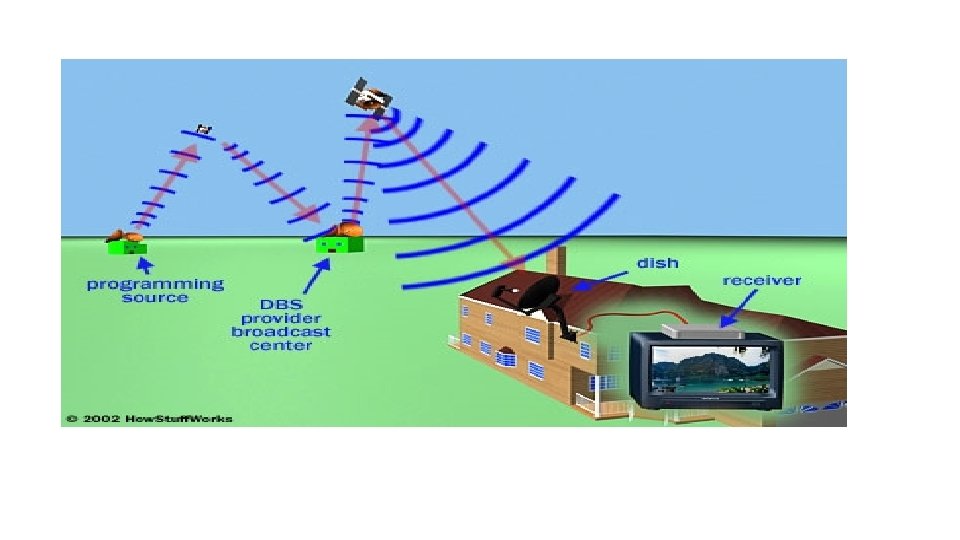 Direct Broadcast satellites (DBS) üSatellites provide broadcast transmissions in the fullest sense of the word, because antenna footprints can be made to cover large areas of the earth. üThe idea of using satellites to provide direct transmissions into the home has been around for many years, and the services pro- vided are known generally as direct broadcast satellite (DBS) services. üBroadcast services include audio, television, and Internet services.