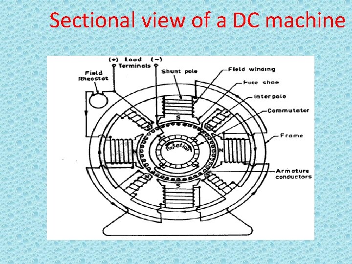 Construction of DC Generator Field system Armature core Armature winding Commutator Brushes