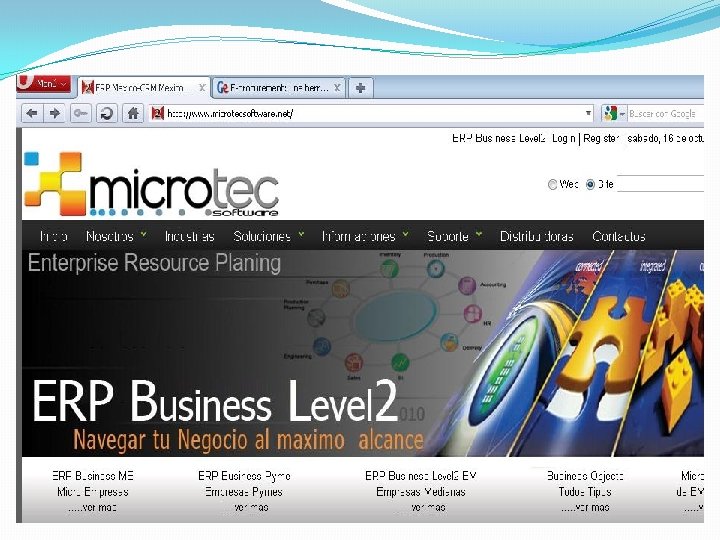 ERP Los ERP (Enterprise, Resource, Planing) son sistemas complejos de información que integra distintos procesos dentro de la compañía en puntos esenciales como Compras, Producción, Presupuestos, Pagos, Etc. Esta Integración genera una reducción de costos administrativos, una mayor eficiencia para manejar los inventarios, un verdadero conocimiento de los gastos y valores de los inventarios, así como también información actualizada y verídica que ayuda al ejecutivo a tomar decisiones tanto operativas, administrativas como estratégicas. Es una forma de utilizar la información a través de toda la organización en áreas claves como fabricación, compras, administración de inventario y cadena de suministros, control financiero, administración de recursos humanos, logística y distribución, ventas, marketing y administración de relaciones con clientes