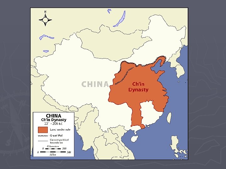 Qin Dynasty ► The victor of the Warring States Period is the Qin Dynasty ► 221 B. C. – China is united for the first time