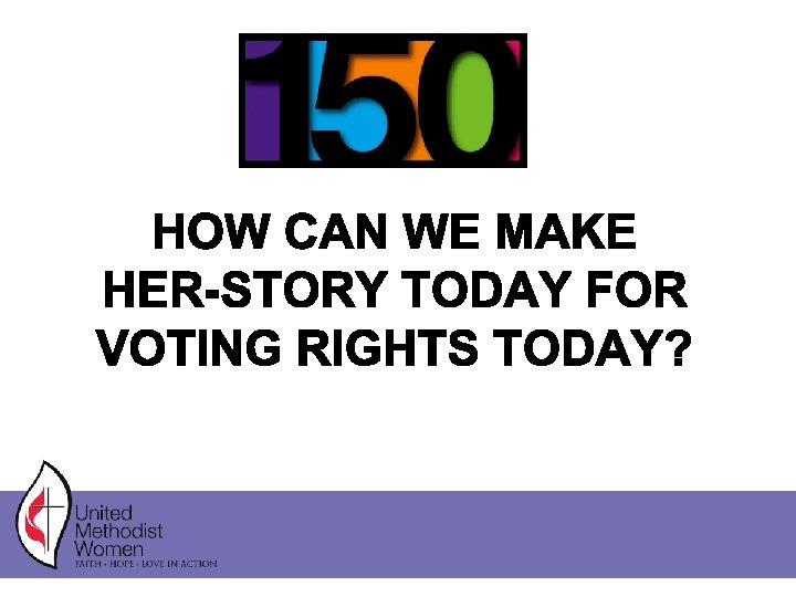 RESOURCES • Fellowship of Love: Methodist Women Changing American Racial Attitudes, 1920 -1968, by Alice G. Knotts • United Methodist Women’s Racial Justice Timeline (now online!) • The Brennan Center for Justice • The Sentencing Project • League of Women Voters • NAACP Legal Defense and Education Fund • U. S. Department of Justice History of Federal Voting Rights Laws