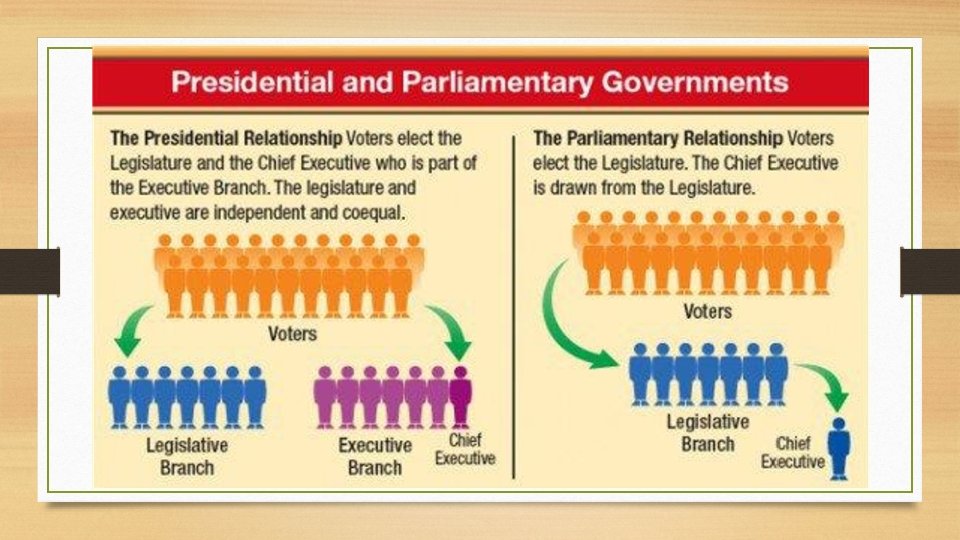 SSCG 1 c • Determine how the role of the executive differs in presidential and parliamentary systems of governments.
